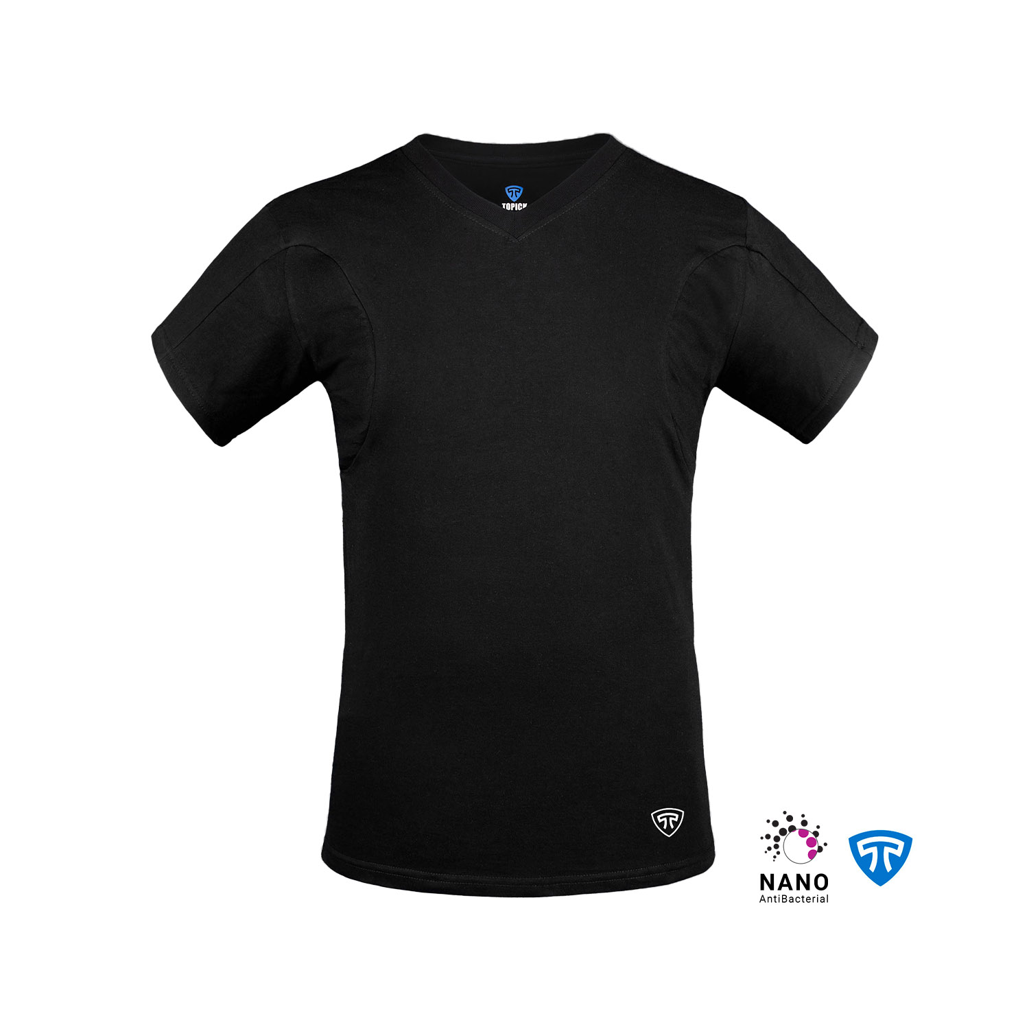 تیشرت ضد تعریق نانو آنتیباکتریال تاپیک دارای سه لایه پارچه در ناحیه زیربغل است که با ظرافت زیادی دوخته شدهاند. لایه میانی نقش اساسی را ایفا میکند. این لایه از پارچهای دوطرفه تشکیل شده است که یک طرف آن خاصیت آبدوستی دارد و تعریق را از روی بدن جذب میکند؛ در حالی که طرف دیگر خاصیت آبگریزی دارد و مانع از عبور عرق به ناحیه زیربغل میشود. این قابلیت به همراه عبور هوا، امکان تهویه مناسب را در طول روز فراهم میکند. شما میتوانید به صورت روزانه از تیشرت تاپیک استفاده کنید.