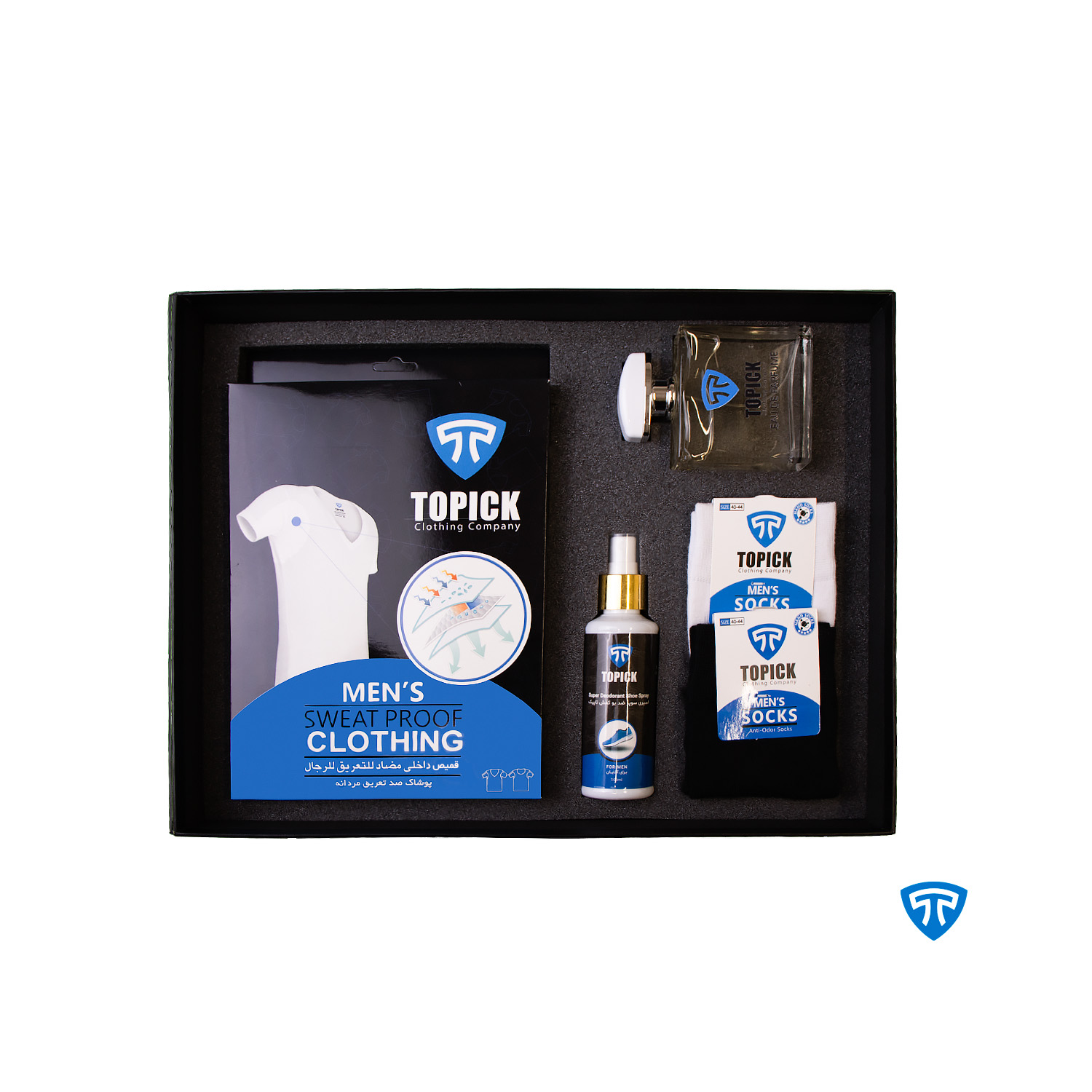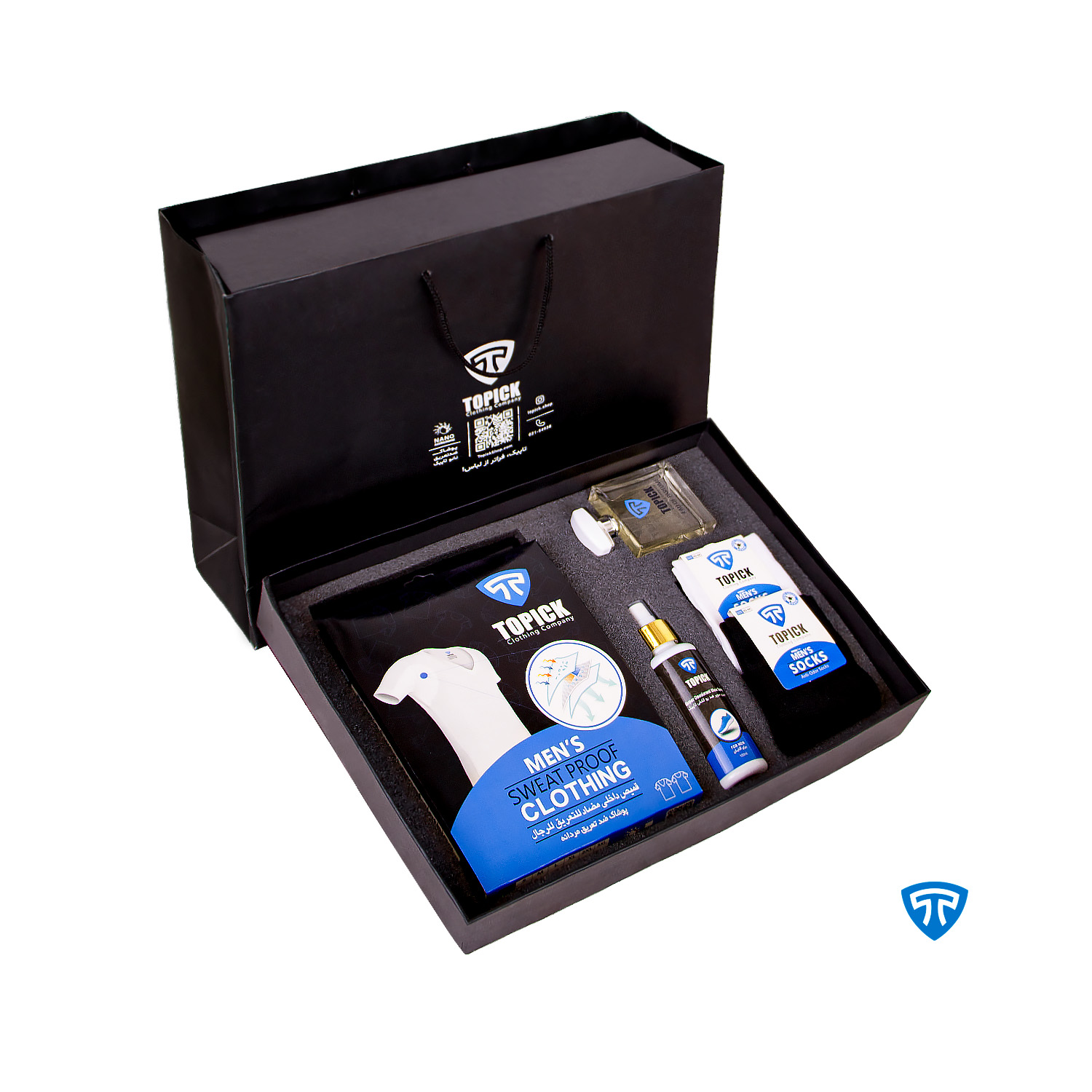 انتخابی خاص و کاربردی شامل زیرپوش ضدتعریق نانوآنتی باکتریال، اسپری ضدبو کفش، 2 عدد جوراب ضدبو نانوآنتی باکتریال، و عطر مردانه ساواج 100 میل با رایحه فوق العاده شیک.