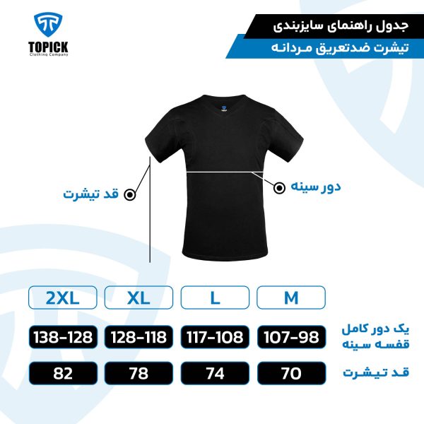معیار سایزبندی تیشرت تاپیک، اندازه دور سینه است.